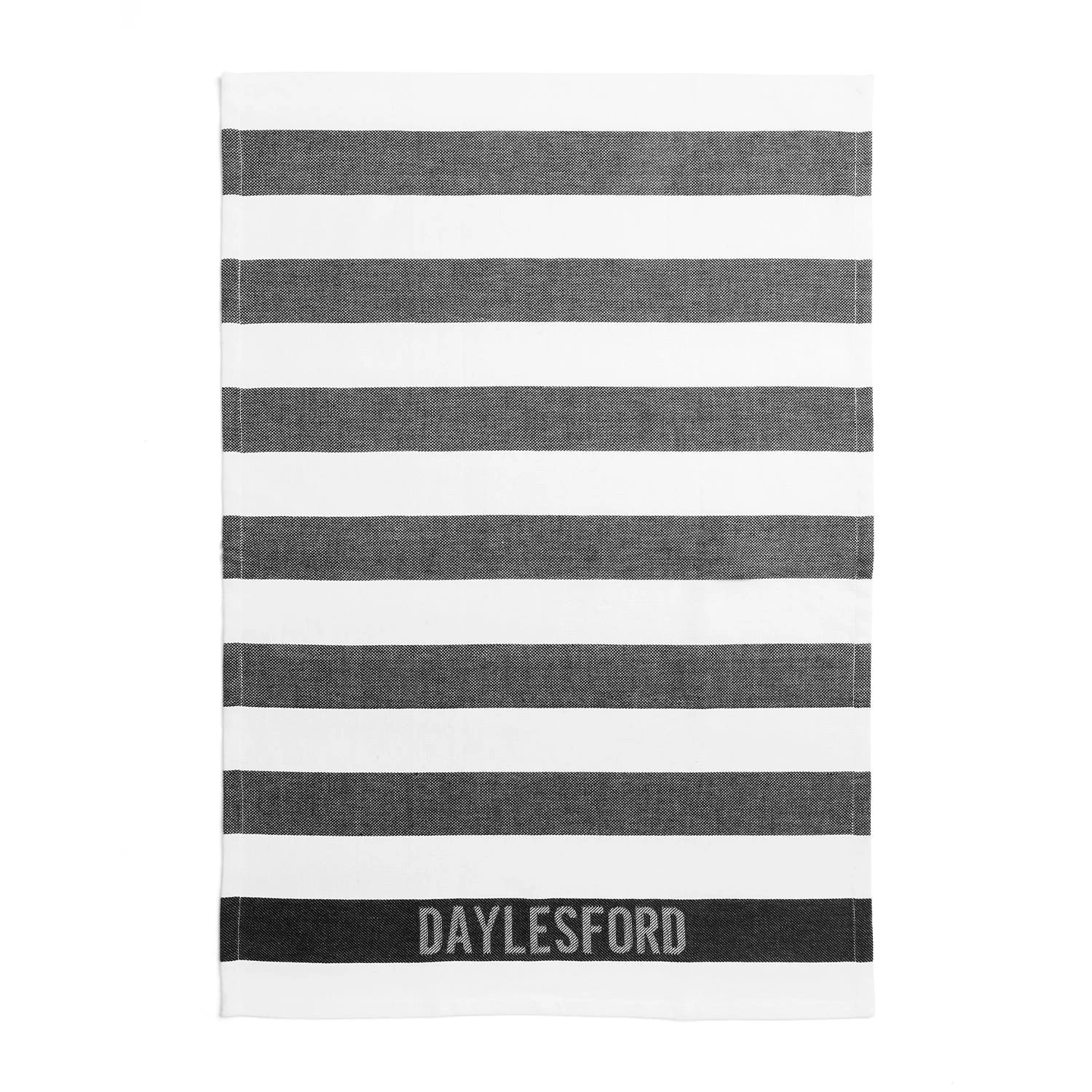 100% cotton black and white striped tea towel. Complete the set with our matching apron and oven gloves.