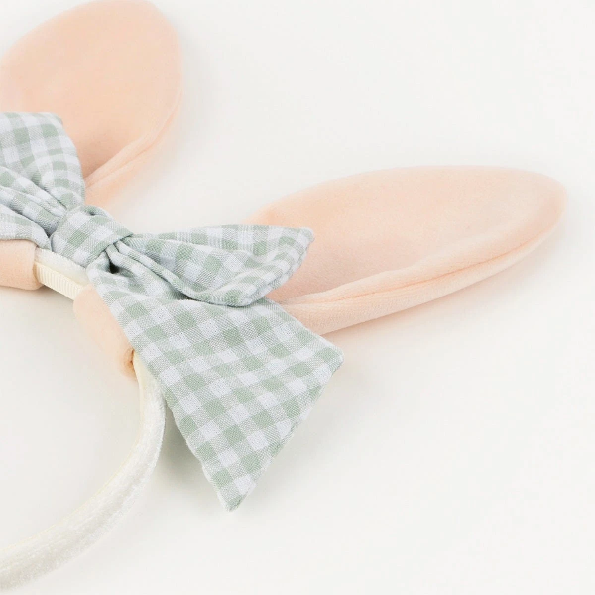 This hairband features pink velvet ears and a mint ginham bow.This hairband features pink velvet ears and a mint ginham bow.
