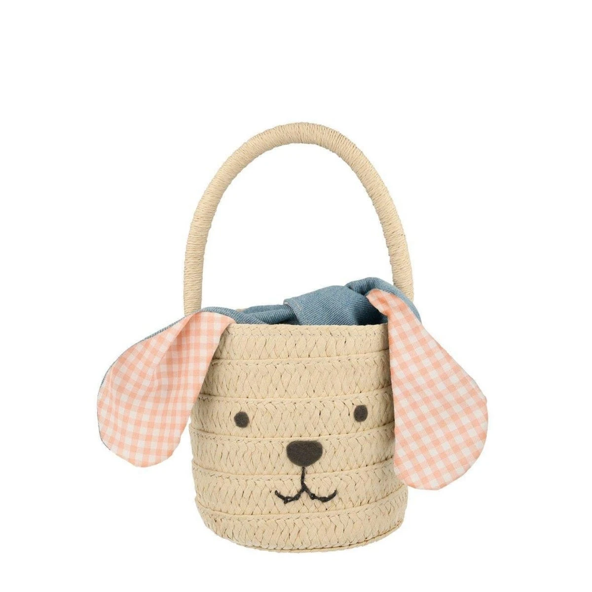 Children love carrying and playing with this adorable bucket bag, which features blue cotton and orange gingham ears (which can be tied to keep the contents of the bag secure) and a smiling embroidery and felt face.ÂÂ