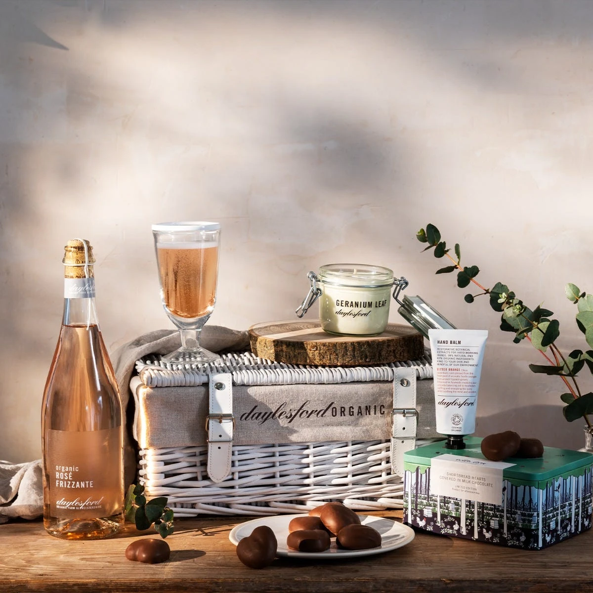 Indulgent feel-good favourites bound to raise a smile, including chocolate shortbread, sparling rosé wine and our award-winning hand balm.