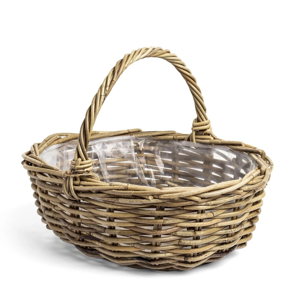 Natural, hand woven rattan basket. Suitable for indoor and outdoor use.