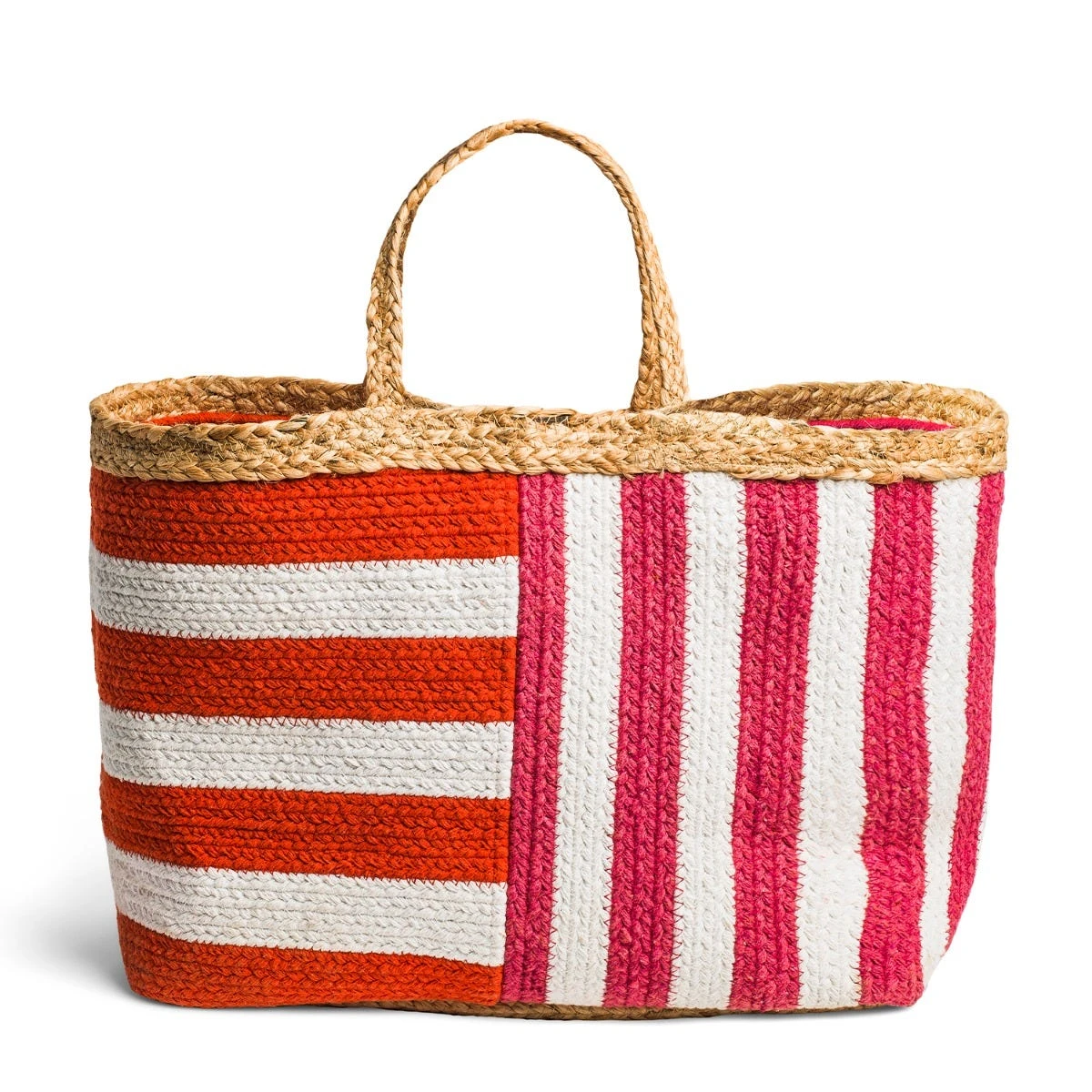 The bold stripes of bright red, pink and white make this bag the ultimate statement accessory for summer. The size is ideal for carrying a picnic or taking towels and other essentials to the beach.