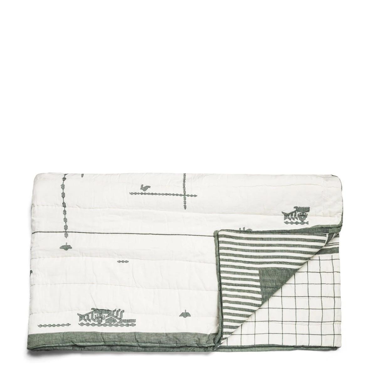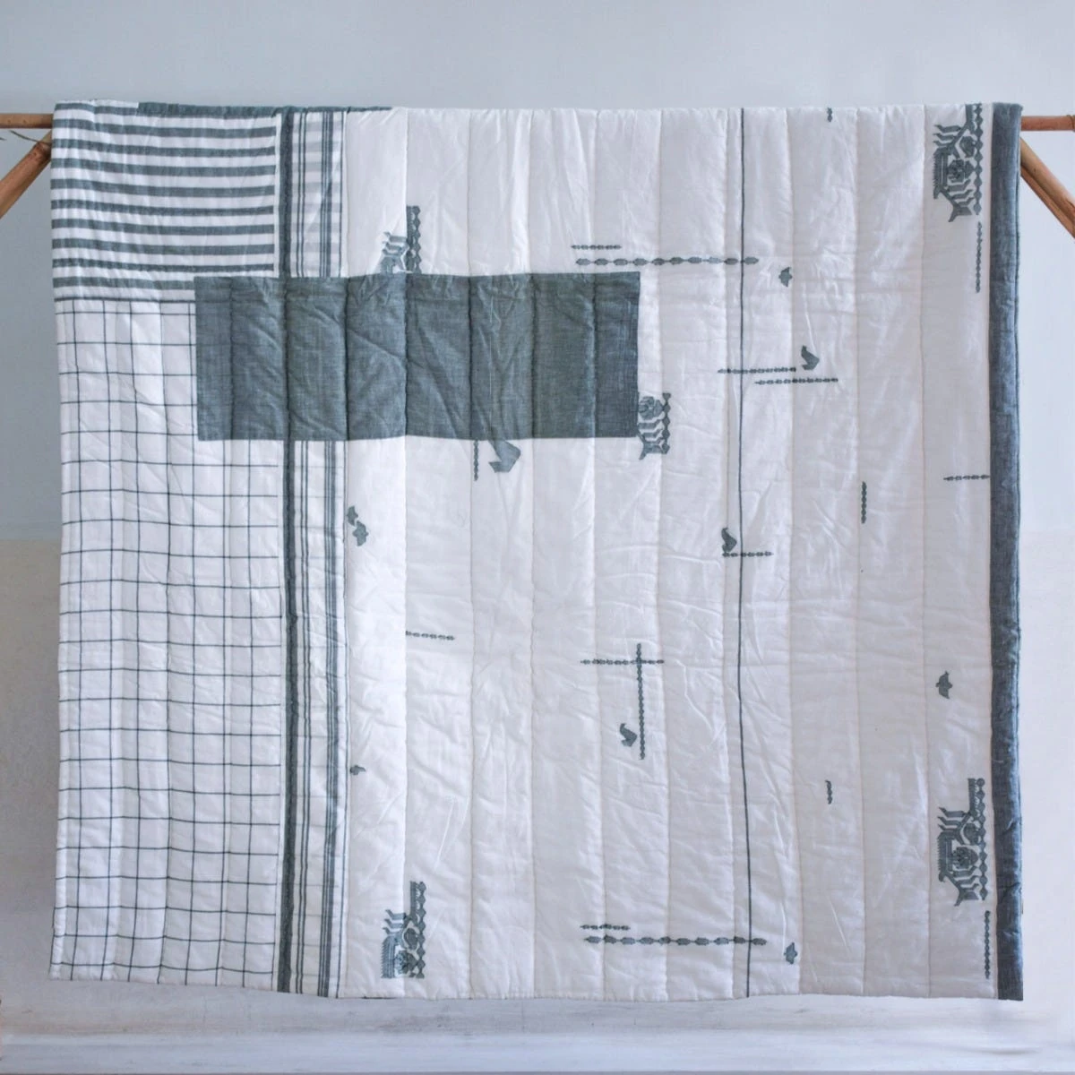 Hand-quilted with women’s groups in Rajasthan, using the finest naturally dyed cotton weaves from West Bengal.