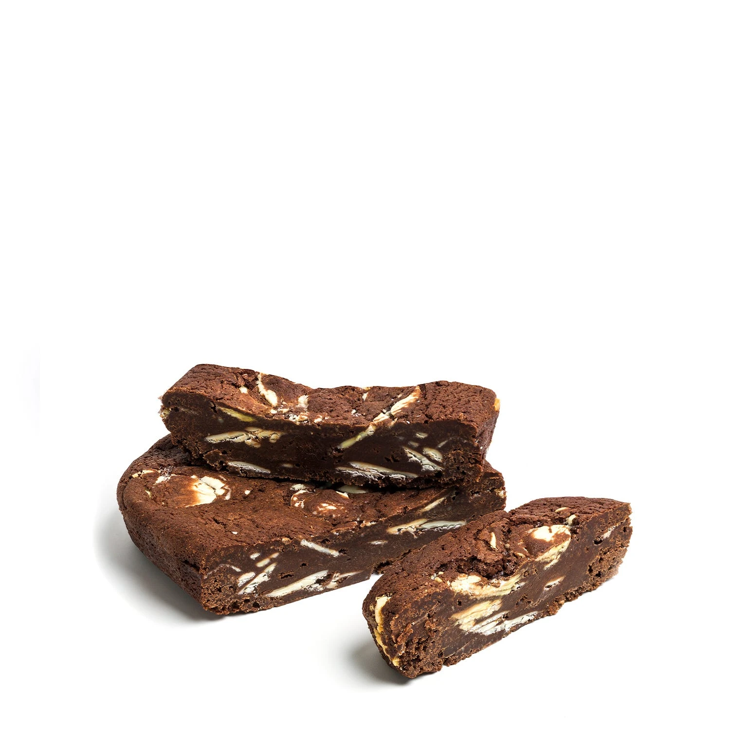 Made by hand on our farm. The ultimate chocolate treat, a decadent, moist brownie with a generous amount of white chocolate pieces.Â