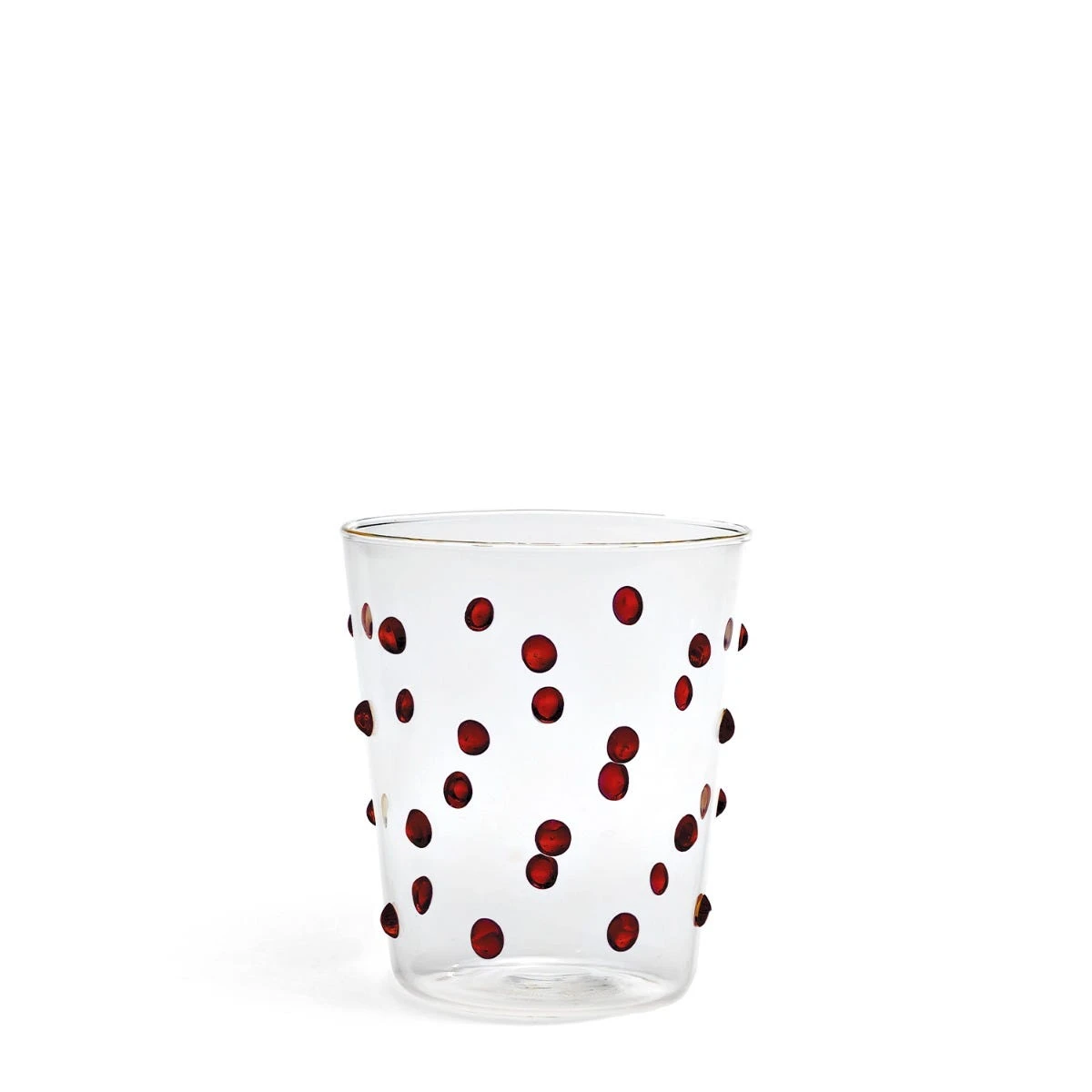These stunning borosilicate glasses with red detail are made by hand in Italy, each piece is entirely unique.