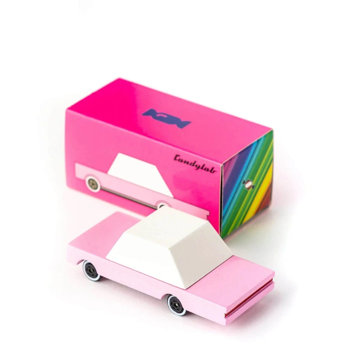 A solid beechwood vintage-inspired pink toy car.A solid beechwood vintage-inspired pink toy car.