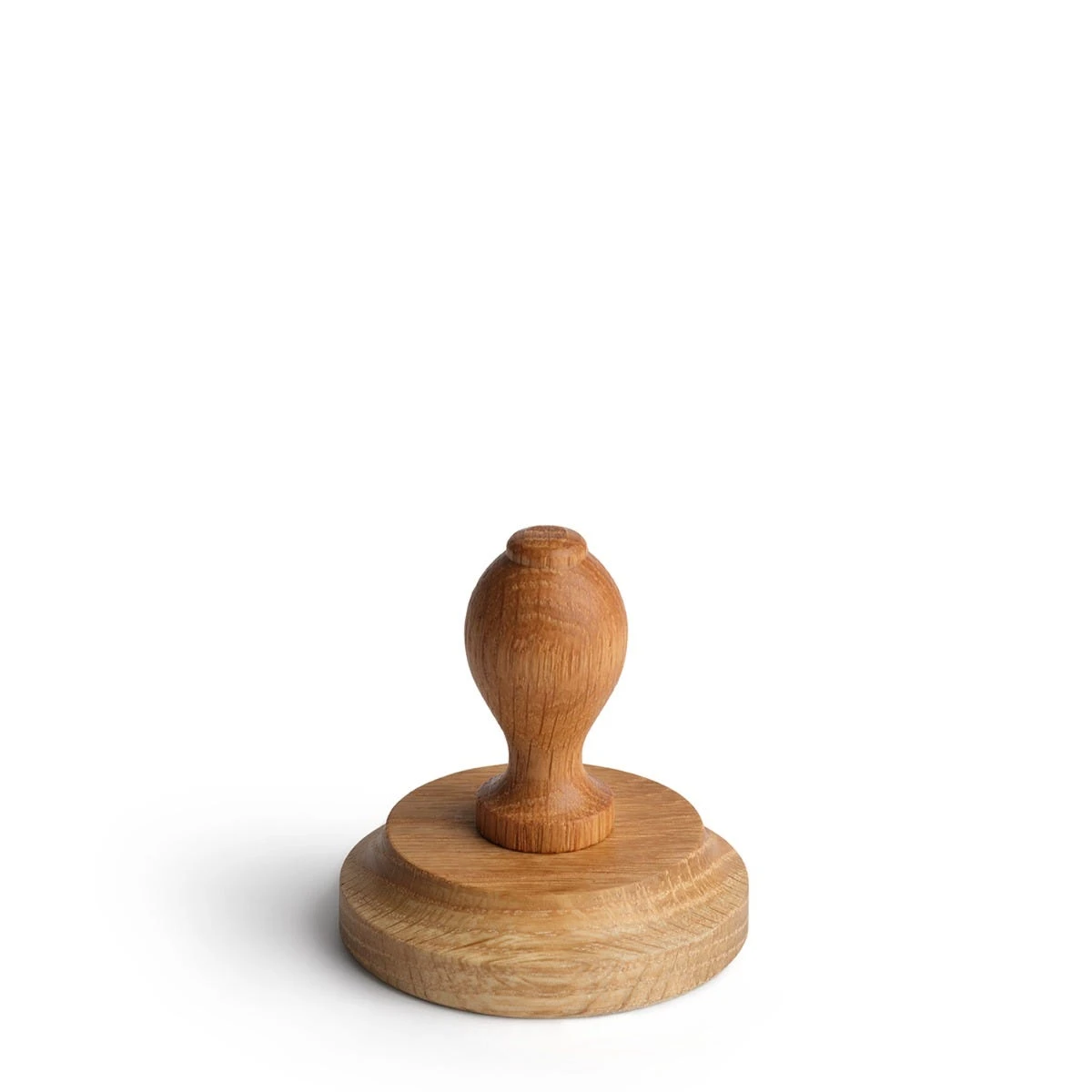 A round oak wood tamper which prepares pots for planting, giving a level, firm surface to the soil.A round oak wood tamper which prepares pots for planting, giving a level, firm surface to the soil.