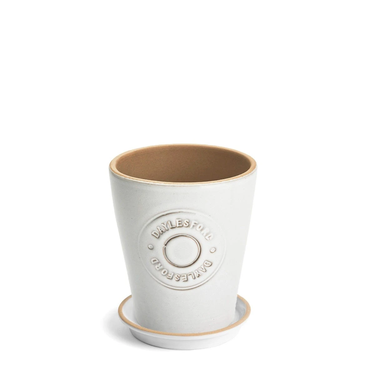 A glazed clay plant pot with saucer stamped with our signature Daylesford logo and made in Portugal. Suitable for indoor or outdoor use, frost resistant.